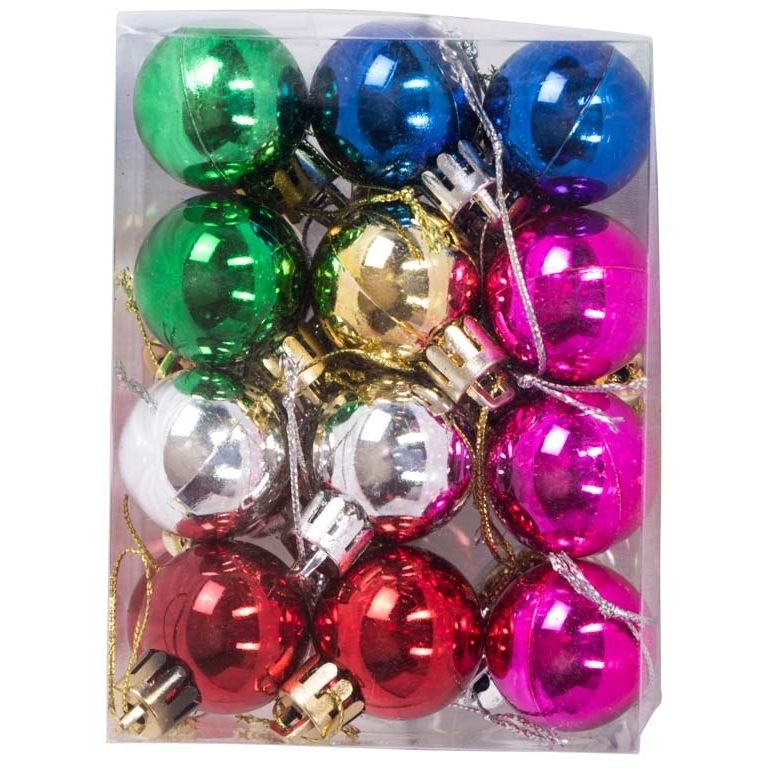 Julekugler - 24 stk. - Blandede farver. Måler 3 cm i diameter
